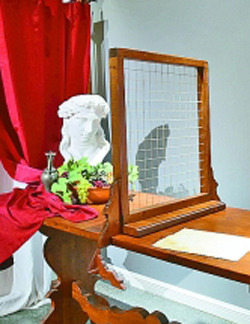 展覽現(xiàn)場(chǎng)還原的藝術(shù)家工作室場(chǎng)景。圖片為本報(bào)記者 于園媛攝/光明圖片