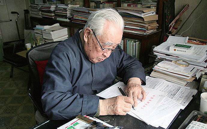 在北京入夏最熱的那一天,收到胡可老人寄來(lái)他的新作《話(huà)劇的足跡》。看到他用的還是那種傳統(tǒng)的大號(hào)牛皮紙信封,上面有我非常熟悉的工整蒼勁的筆跡,完全不像是一位外出離不開(kāi)拐杖,到了夜晚依靠吸氧才能入眠的老人所書(shū)寫(xiě),而他這種嚴(yán)謹(jǐn)細(xì)致對(duì)待生活中每一個(gè)細(xì)節(jié)的認(rèn)真態(tài)度,也是數(shù)十年如一日從未改變。這使我不由得又想起春天去家里拜訪老人,他還在那間簡(jiǎn)陋且因藏書(shū)顯得擁擠的書(shū)房里寫(xiě)作的情景,頓時(shí)有一種感動(dòng)從我心底涌出。中國(guó)話(huà)劇已走過(guò)110年的艱辛歷程,如今年近白壽仍在藝苑筆耕不輟的劇人,有誰(shuí)能比胡可跋渉的里程更長(zhǎng),歷經(jīng)的風(fēng)雨更多,創(chuàng)作的成果更為豐碩?無(wú)論怎樣橫豎比較,胡可都?jí)虻蒙现袊?guó)話(huà)劇長(zhǎng)路的開(kāi)拓者和見(jiàn)證人的榮耀。正是懷著這樣一種深深的崇敬,我傾心拜讀他與共和國(guó)同行的“讀劇札記”,去尋找他光榮而又漫長(zhǎng)的堅(jiān)實(shí)足跡。