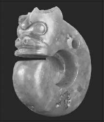 另一類為玉豬龍,正式發(fā)掘出土的有4件,分別出自牛河梁遺址和半拉山遺址的積石冢石棺墓內(nèi)。其中,牛河梁遺址第二地點(diǎn)一號(hào)積石冢4號(hào)墓內(nèi)出土2件,牛河梁遺址第十六地點(diǎn)14號(hào)墓內(nèi)出土l件;半拉山遺址12號(hào)墓內(nèi)出土1件。另外,敖漢旗博物館收藏有3件、巴林右旗博物館收藏有2件、巴林左旗博物館收藏有1件,均有明確出土地點(diǎn)。遼寧省博物館、旅順博物館、天津博物館、首都博物館、故宮博物院等收藏有10余件紅山文化玉豬龍,出土地點(diǎn)不詳。此外,英國(guó)大英博物館收藏有2件,其中l(wèi)件器體身部殘缺;法國(guó)吉美博物館收藏有1件。