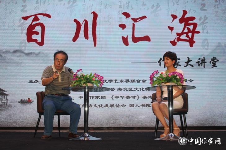 “百川匯海?作家大講堂”由北京海淀區(qū)委宣傳部、海淀區(qū)文聯(lián)、海淀區(qū)文化委主辦,海淀區(qū)作協(xié)、海淀區(qū)文化館承辦,中國作家網(wǎng)、《中華英才》雜志社、北京絲路文化發(fā)展協(xié)會、國人書院協(xié)辦,由北京大學(xué)中文系主任陳曉明,文藝?yán)碚撛u論家、首都師范大學(xué)張志忠,作家、海淀區(qū)作協(xié)主席石鐘山擔(dān)任文學(xué)顧問;由中央電視臺新聞主播崔志剛擔(dān)任藝術(shù)顧問。講座每月一期,邀請活躍在當(dāng)代文壇上的著名作家、文藝?yán)碚摷摇⒏叟_作家以“師說”的名義走上講臺,追求內(nèi)容與形式的創(chuàng)新,強調(diào)“師者”與受眾者的互動。自2017年6月創(chuàng)辦以來,謝冕、劉慶邦、肖復(fù)興、陸天明等陸續(xù)在大講堂擔(dān)任主講,反響熱烈。