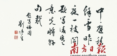 現(xiàn)場(chǎng)展出的近70幅書(shū)法作品,是劉逸生藝術(shù)品格的寫(xiě)照。這些作品是劉逸生閑暇時(shí)所作,內(nèi)容多為古代名言秀句與作者自己創(chuàng)作的詩(shī)詞?!皠⒁萆壬臅?shū)法特點(diǎn),我總結(jié)為兩個(gè)字:‘雅’與‘逸’?!睆V東省書(shū)法家協(xié)會(huì)原主席、著名書(shū)法家陳永正如此評(píng)價(jià)。