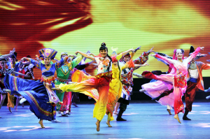 群舞《愛我中華》展現(xiàn)了寧夏兒女斗志昂揚(yáng)的精神風(fēng)貌。