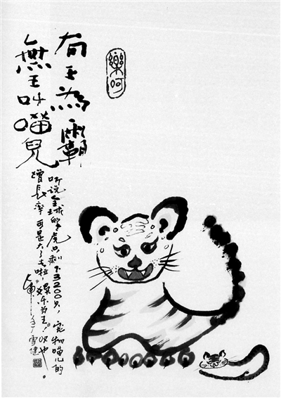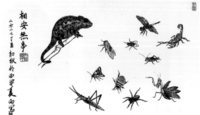 北京青年報(bào)記者在展品中看到,著名表演藝術(shù)家李雪健展示了兩幅作品,其中一幅《樂(lè)呵》畫了一只有趣的花貓,題字:“有王為霸,無(wú)王叫喵兒。”電影演員夏雨的一幅《相安無(wú)事》畫了各種昆蟲在同一畫面的各種神態(tài),彰顯內(nèi)心狀態(tài)。表演藝術(shù)家斯琴高娃的一幅畫作將她在影視作品中扮演的角色畫得惟妙惟肖,就像自畫像,看出她對(duì)扮演角色的喜愛(ài)。在這些書畫作品中,觀眾不僅能看到藝術(shù)家們?yōu)榱颂岣咦约旱乃囆g(shù)境界而對(duì)書畫的修煉,也能透過(guò)書畫感受到藝術(shù)家們的內(nèi)心世界。