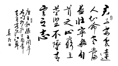 據(jù)介紹,首屆百位影視名人書畫展征集到的最被組委會(huì)專家稱頌的作品,是90歲高齡的著名演員藍(lán)天野的《松鷹圖》;最大的作品,是演員唐國(guó)強(qiáng)創(chuàng)作的長(zhǎng)達(dá)一丈八的行草書法作品——毛主席詩(shī)詞《沁園春·雪》;最年輕作者的作品,是演員關(guān)曉彤的書法作品《悟》。