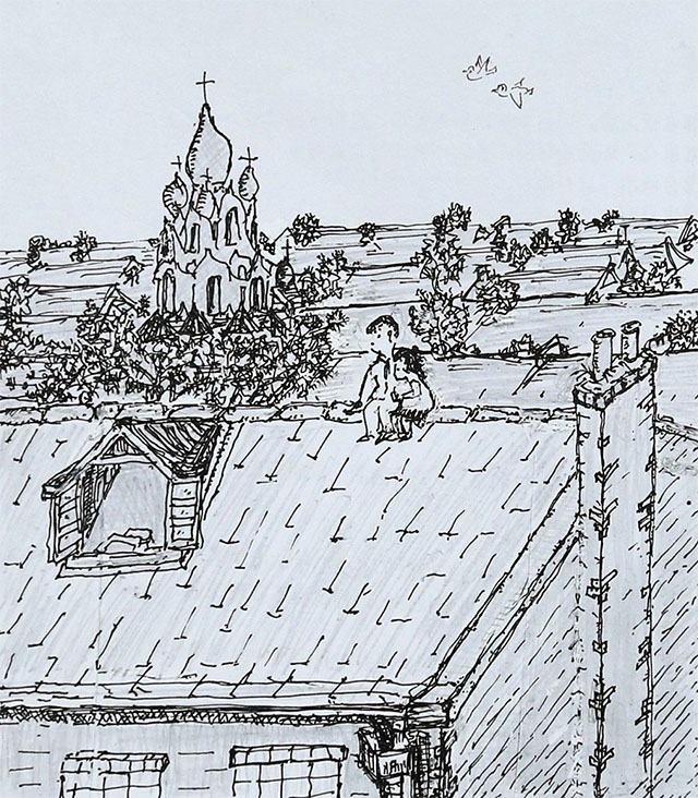 “小毛”理發(fā)店、弄堂房子內部,上海衣著打扮,如果熟悉,稍有繪畫能力,就可以畫了,老老實實畫下來,與插圖畫家的初衷不同。比如瑞金路教堂,多年后改成新錦江酒店,時間就是這樣變的,給讀者一個更真的印象。