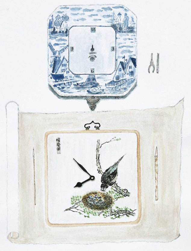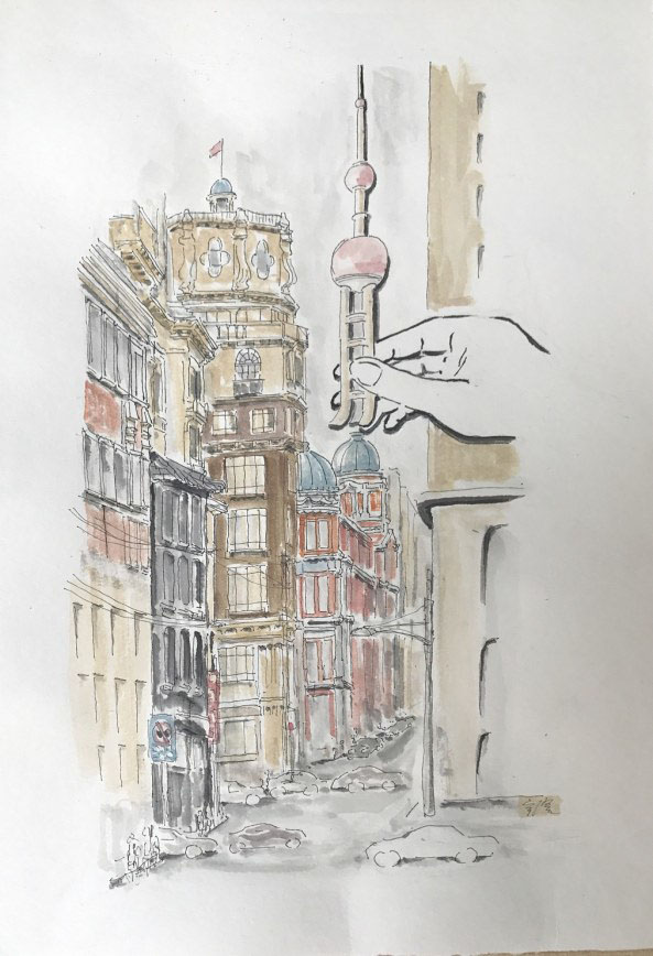 以前我讀瑞金路民辦小學,老師是家庭婦女,條件差,上課很不好玩。因此我常常逃學,帶一根大鐵釘,每天順陜西南路凡爾登花園圍墻一路走、一路劃出一道深痕才滿足。當時流行“刻蠟紙”,我喜歡自己畫,拿到新課本,喜歡立刻把“語文”“數(shù)學”標題改成立體字……后來去黑龍江下鄉(xiāng),才在信里認真畫圖,“野生”畫法,北方的房子、火炕、廁所,甚至磚墻砌法花樣,都與南方不同,圖畫有效果。