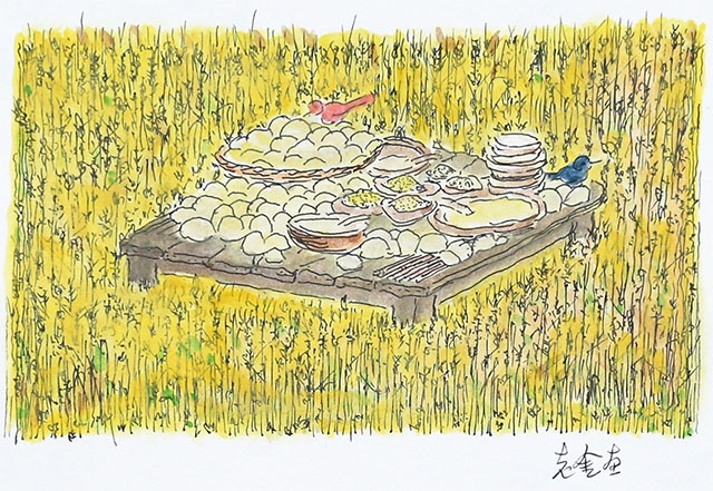 再來一次競賽會怎樣?麥地里的板桌,邁開四條腿,像馬匹一樣漸漸朝這里走來…… (出自《方島》)
