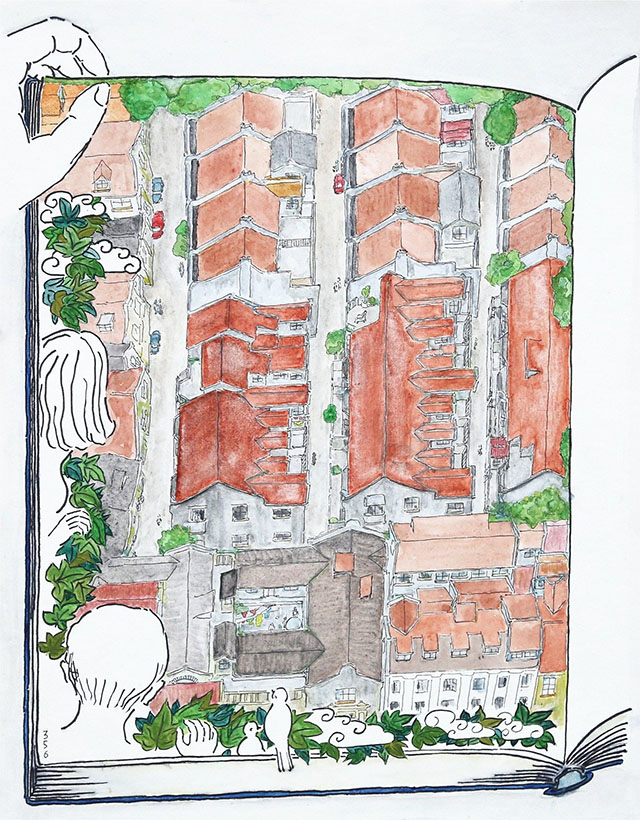 敘事形成的焦慮,到此安靜下來了,仿佛一切都落定了,出現(xiàn)了固定的線條,種種細部暈染,小心翼翼,大大咧咧,都促使我一直畫下去,直到完成。這個狀態(tài),四周比寫作時間更幽暗,更單純、平穩(wěn),仿佛我在夢中。