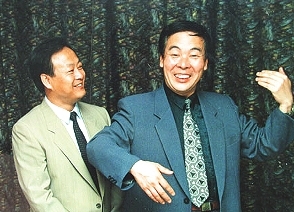 王謙祥:對,我覺得因為我們學的跟其他好多人、包括和我們年齡差不多的演員學的都不一樣。我們是科班,所以從小就養(yǎng)成了那么一種習慣。我們每次請馬季先生給我們看看節(jié)目,都是先生坐那兒,我們倆規(guī)規(guī)矩矩站著說。必須得拿師父當師父,你才能說好相聲;拿師父不當師父,或者你根本就不說,坐那兒念本子,這念不出味兒來,因為這里頭除了人家寫出來的東西,還需要你的感情,你的體會,通過你的表演來表演出來。只有這樣才能看出問題。我們倆自己覺得自己做得還算行吧,所以先生也挺滿意的,他的要求比較寬松,對我們倆也特殊一點兒。