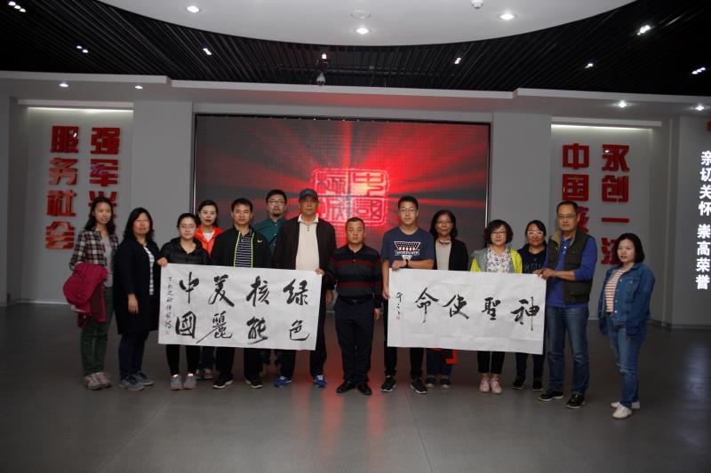 在黨的十九大召開前夕,應中國核工業(yè)集團公司的邀請,中央企業(yè)書法專業(yè)委員會的書法家們于2017年9月16日至2017年9月25日與中核集團共同開展“綠色核能 美麗中國”——中核集團第三屆“核你在一起”科普開放周暨“翰墨飄香送文化 丹青溢彩央企情”活動。書法家們在零距離的接觸到核領域的重點工程項目并且領略到核電人的敬業(yè)精神的同時,也向偉大的核電事業(yè)工作者們表示慰問和敬意。