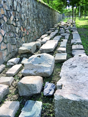 與圓明園周邊區(qū)域的搬遷騰退同步,圓明園專門成立了文物回收工作組,到目前為止已收回虎皮石、石構(gòu)件、城磚等文物8萬(wàn)余件,在園內(nèi)形成了兩道壯觀的“文物長(zhǎng)城”。