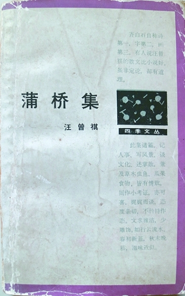 他曾對(duì)漓江出版社的《汪曾祺自選集》(1987年10月出版)發(fā)表過一通很妙的議論。他剛拿到此書時(shí),對(duì)送書上門的聶震寧說:“藍(lán)配紫,臭狗屎?!保ù藭饷娴仙鴷小白赃x集”三個(gè)大字卻是綠藍(lán)色的)。聶震寧回說:“臭狗屎就臭狗屎,反正書是好書?!边@本書初版本才印了兩千冊(cè),汪先生怕出版社虧本,給家鄉(xiāng)高郵的官員寫信,看家鄉(xiāng)新華書店可否能訂一點(diǎn),以解出版社之憂。僅此小事,也可見出汪先生的善良和善解人意,許多時(shí)候,他總是為別人著想的。我手頭的這本“自選集”,就是購于高郵縣新華書店,時(shí)間是1988年10月。