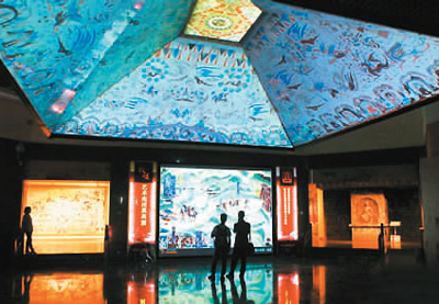 新的游覽方式安排游客在進(jìn)入莫高窟參觀之前,先在數(shù)字展示中心觀看兩部20分鐘的主題電影《千年莫高》和球幕電影《夢(mèng)幻佛宮》,讓游客在短時(shí)間內(nèi)對(duì)莫高窟文化的背景知識(shí)有一定了解,再前往洞窟實(shí)體參觀。