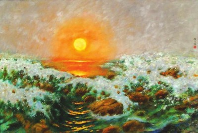 名為 《祖國(guó)頌》 的美術(shù)作品,至少有一幅國(guó)畫(huà)與一幅油畫(huà)堪稱經(jīng)典。其中,經(jīng)典國(guó)畫(huà)《祖國(guó)頌》 出自齊白石,既能代表藝術(shù)家大寫(xiě)意花鳥(niǎo)的最高水平,也算得上新中國(guó)紅色經(jīng)典藝術(shù)的開(kāi)山作之一。1954年創(chuàng)作這幅作品時(shí),白石老人已逾90歲高齡。高2.18米、寬0.725米的巨幅畫(huà)作中,所繪內(nèi)容有著藝術(shù)家一以貫之的簡(jiǎn)潔,只有一株松柏、一輪紅日、一只仙鶴、一汪湖水、一方巖石。這些事物的組合卻不簡(jiǎn)單,不僅僅是美好寓意的累加,也不單單讓畫(huà)面巧妙擁有黃金分割般的比例,筆觸流淌出的更是一種神清氣爽、暢快自由,那是藝術(shù)家心情的真實(shí)表達(dá)。經(jīng)典油畫(huà) 《祖國(guó)頌》 出自顏文樑。與齊白石的同名畫(huà)作一樣,一輪紅日依然是畫(huà)面中牽引人們視線的焦點(diǎn)。這輪從海平面上一躍而出的紅日,極盡寫(xiě)實(shí)的油畫(huà)技法則又予人身臨其境之感。畫(huà)面令人不禁聯(lián)想起莫奈的名畫(huà) 《印象·日出》,畫(huà)中氣魄卻又讓人不免吟誦起蘇軾的名句“大江東去,浪淘盡,千古風(fēng)流人物……”