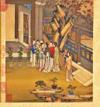 明代,在《陶庵夢(mèng)憶》中記載有:“兗州紹紳家風(fēng)氣襲王府。賞菊之日,其桌、其炕、其燈、其爐、其盤、其盒、其盆盎、其看器、其杯盤大觥、其壺、其幃、其褥、其酒、其面食、其衣服花樣,無不菊者,夜燒燭照之,蒸蒸烘染,較日色更浮出數(shù)層。席散,撤葦簾以受繁露?!?/p>