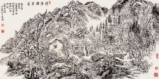 而就在此時,張仃也開始挑戰(zhàn)“一向無人敢于問津”的焦墨山水畫創(chuàng)作。相比于水墨畫,焦墨畫創(chuàng)作材料中水的成分要少,用的是干墨, “難以發(fā)揮用水之長” 。但張仃卻用他的焦墨創(chuàng)作留下了一幅幅名作,其中最出名的便是他于1977年創(chuàng)作的《房山十渡焦墨寫生》 ?!八慕鼓剿嬙谥袊鼓嬍飞鲜鞘浊恢傅摹?”說起張仃的焦墨畫創(chuàng)作,清華大學美術(shù)學院教授陳池瑜贊不絕口:“北方的山水,質(zhì)感很強,比較粗獷,這樣的山水用焦墨畫表現(xiàn)要更好。張仃先生一系列的焦墨山水畫線條粗細得當,畫面豐富,山石的結(jié)構(gòu)、山勢的雄偉,都令人拍案叫絕。 ”