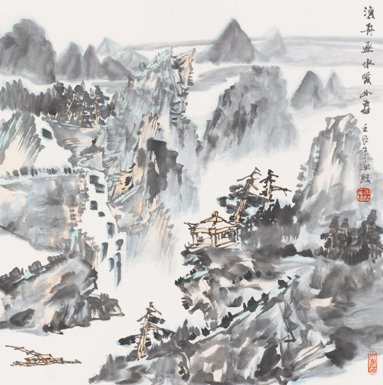 《大新縣城黑水河晨韻》 97cm×90cm 2010年 紙本水墨