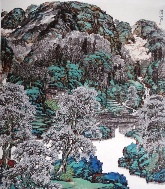 2017年,高密紅高粱文化節(jié)組委會精心籌備了20多項重點文化活動。其中“南來的風”是今年由中國藝術報社和中國(高密)紅高粱文化節(jié)籌委會共同主辦,山東貝加爾食品有限公司和山東三三集團股份有限公司承辦的精彩畫展。由廣西中國畫名家謝麟、陽山、余永健、白曉軍、王慶軍、潘正華六人創(chuàng)作的50幅精品,成為今年紅高粱文化節(jié)紅高粱之約·丹青高密主題畫展眾人矚目的亮彩。謝麟的山水畫隱喻著“天人合一、道法自然”的生命理念,他將對中國山和水的認知平實地排布成具有一定規(guī)律可循的圖樣,令我們自然而然地接受了他借鑒西方抽象構成的理念而完成的中國畫里熟悉中的陌生,這種非山水實體再現(xiàn)的轉化,筆法與筆墨程式富有節(jié)奏感,行筆受書法影響頗深,在許多結點與構成的關鍵之處,處處都體現(xiàn)了他對書法中字里行間的握控,對樹石的點染與山水的鋪陳,色彩純凈,輕盈明麗,調子明晰,隱喻著他對“青山綠水”觀念的具體而抽象的獨特解讀。陽山繼承了他的父親陽太陽先生的藝術思想,堅持在對大自然的敬畏和感受中體會中國山水畫的審美精神,堅持寫生創(chuàng)作,在寫“真山水”中表達自己的感受,從而形成自己的藝術風格。他的作品表現(xiàn)了南方山水秀麗溫潤的柔美,同時又柔中帶剛,有蒼勁渾厚蘊含其中。陽山的山水畫強調寫意的筆性,畫面的景象都是用“筆”來表現(xiàn),在筆意的營造下再補墨色,通過生動的筆墨抒發(fā)情懷和營造意境,這是他在寫生中形成的藝術語言,也是他對傳統(tǒng)中國畫寫意精神的理解和傳承。余永健的畫作透著靜氣,造型簡練,筆法靈動,色墨古雅,構圖多變,冷冷然有清氣出縑素間,清靜但不孤寂,簡樸卻不荒寒,全無不食人間煙火的蕭瑟之氣,而是一片鳥語花香,詩書畫印俱全,從形式上力求返璞歸真,自然而然地完成了其繪畫品格的升華,呈現(xiàn)出一位當代儒士祥和樂觀、積極入世的精神風貌。白曉軍的山水畫多取材自漓江流域,藝術風格秀潤天成?!八囆g與哲學”的合力創(chuàng)作,是白曉軍藝術作品中最為突出的文化特質,他的藝術創(chuàng)作和山水畫意境處處體現(xiàn)了其對中國哲學極大的關注和探究。他所擅長的喀斯特山石形態(tài)的表現(xiàn)手法,隱含著豪邁的山水大氣象。王慶軍對待藝術,始終有著近乎宗教般虔誠的心境。他從對南方強烈的生命環(huán)境的感受和表現(xiàn)中,以濃烈的色彩以及亞熱帶雨林、灌木、少數(shù)民族民居的描繪,形成自己的藝術面貌。他打破傳統(tǒng)山水畫的模式,從對景寫生中探索總結出富有個性的表現(xiàn)南方山水的語言,使作品在傳承傳統(tǒng)山水畫審美精神和語言特征的同時,富有時代精神和審美個性。潘正華人物畫作品所塑造的大都是勞動人民,近年來更多表現(xiàn)的是少數(shù)民族的生活,其中以廣西南丹白褲瑤為主。他放筆直書各種人物形象,我們可以清晰地品讀到人物原型的不同性格和歲月磨礪在他們臉上的痕跡,甚至背后隱藏著的傳奇故事,帶著他個人情緒的線條信手游走于畫面,一氣呵成,有筆挾風雷之感,具有獨特的審美價值。