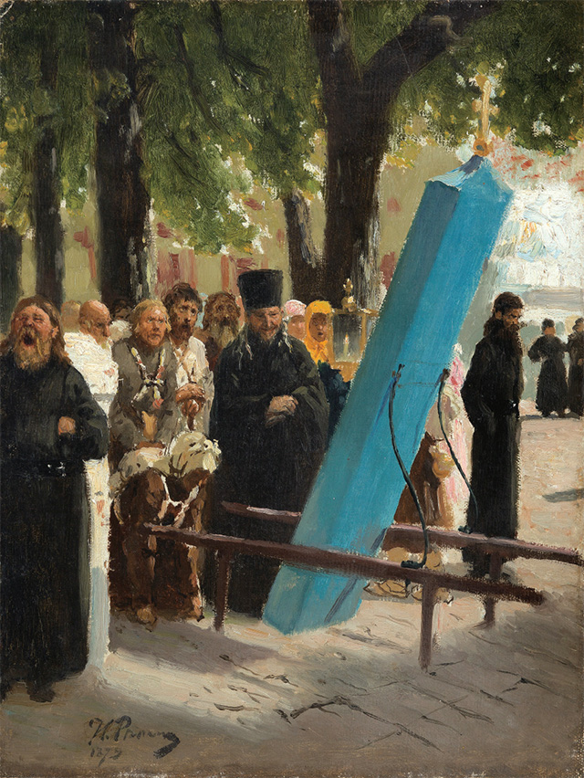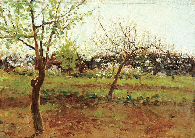 展覽從19至20世紀(jì)初的經(jīng)典的俄羅斯藝術(shù)家開始——克拉姆斯科伊、列賓、列維坦、馬科夫斯基、涅斯捷羅夫、庫斯托季耶夫、謝羅夫。上述藝術(shù)家中的每一位都為俄羅斯藝術(shù)乃至歐洲藝術(shù)的發(fā)展做了很大的貢獻(xiàn)。列賓是一位優(yōu)秀的肖像畫家(《弗列德里克斯的畫像》)、風(fēng)俗畫家(《神像前面》)。他善于利用高超的技巧呈現(xiàn)事物的特點(diǎn)。除了列賓之外,克拉姆斯科伊、馬克夫斯基、庫斯托季耶夫也是一流的肖像畫家。希施金的《松樹林》《牛蒡葉(草圖)》、列維坦的《盛開的蘋果樹》《阿爾卑斯山(草圖)》可謂是俄羅斯現(xiàn)實(shí)主義風(fēng)景畫的奠基人。謝羅夫的創(chuàng)作特點(diǎn)是自由性和精湛的藝術(shù)技巧,《克里米亞的院子(草圖)》即是如此。涅斯捷羅夫作品中呈現(xiàn)的形象則是以象征性而非現(xiàn)實(shí)性的手段對人與世界作了闡釋(《姐妹》,1915)。