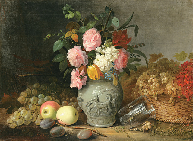 自18世紀(jì)末白俄羅斯就并入了俄羅斯帝國的版圖。因此19世紀(jì)的白俄羅斯藝術(shù)家便跟隨俄羅斯藝術(shù)發(fā)展的腳步,在俄羅斯藝術(shù)的基礎(chǔ)上開始了自身的創(chuàng)作。于是,優(yōu)秀的白俄羅斯靜物畫家赫魯茨基在圣彼得堡獲得了藝術(shù)教育。在此展覽上展出了他的部分作品,《玫瑰和水果》《靜物畫:花兒和水果》一方面為我們寫實(shí)地描繪了花朵與果實(shí),另一方面又呈現(xiàn)出它們的觀賞性和裝飾性;此外,優(yōu)秀的風(fēng)景畫家亞絲諾夫斯基的《石頭》和風(fēng)俗畫家西利瓦諾維奇的《軍人和小伙子》)也同樣獲得了大家的喜愛。