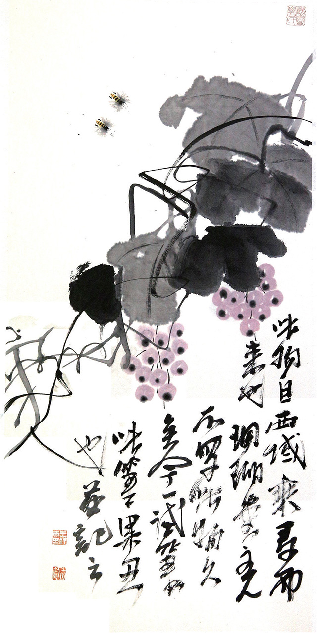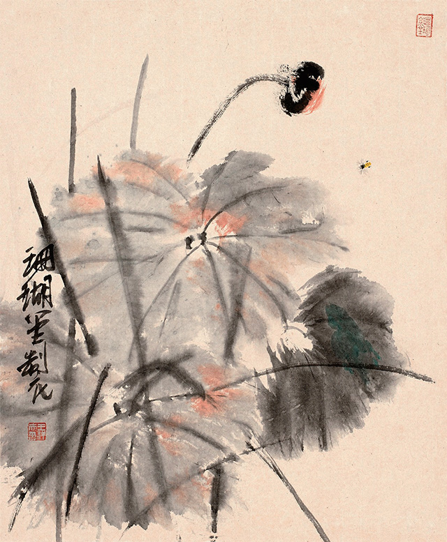前不久,看一本《古今指畫集》,便忽然想起用手指試它一試,且給毛筆放幾天小假,小時候師傅經(jīng)常畫指畫,畫之前,必先換黑衣黑褲,這便是講究,然后才慢慢畫起,或是用小指指甲輕輕著一點墨在紙上一點一點輕輕拉,或是用食指和中指并在一起在紙上用力搓擦,或是單用中指蘸一點墨在紙上輕輕點,食指的指甲最長,著紙有力像是公孫大娘劍器行,在紙上一劈一劈。若四指并攏了一齊上陣,大塊的石頭便在紙上即刻崢嶸起來。想想師傅當(dāng)年畫指畫那雙手真是黑煞難看,指甲縫幾天都洗不干凈,都不忍看他伸手取饅頭。再看看畫冊中潘大師指畫的松石,看看歷代畫家指畫的凌厲用筆,便忍不住研了墨,手巾水盆都準(zhǔn)備好,老婆廚房用的圍裙此刻忽然升級,居然直接與文化接軌。鋪好紙,是從右手先黑起,繼之左手,為了畫這指畫還特意留了指甲,但也不是專門為了畫這幾張破宣紙,平時沒事?lián)崤徘?,右手指甲自然在,再留則是小指,小指指甲畫蟲須,真是要緊的很,其他指甲還很難派用場,而小指指甲留短了還不行,此指便一如筆中的“衣紋”“勾線”。而大拇指卻是中號狼毫。畫指畫,特有一法是以線纏指,粗線細線各有講究,纏一指纏兩指須事先想好,把手指直勒出一道一道楞,還要學(xué)會用手抓墨,水盂里一下,硯池里一下,要快而利落,用手指一抓一抓,即刻灑落紙上,淡墨一下濃墨一下,紙上便淋漓起來。潘天壽最喜畫指畫,想必其指甲亦是特別的長,看他指畫之松針,厲厲一如刀劍,今年6月荷花開,專門跑去杭州看了一回荷,心里便想著潘大師的指墨荷花。潘大師的指墨好,好在尺幅大而畫面凈爽,沒一滴墨跡灑落,無論山石蘭草松針鷲鳥,線條遒勁利落得讓人想不到,想必潘大師是一邊畫一邊用什么兜著那只手,不然怎么四尺整張的大畫會那么干凈?畫指墨真是很難做到這一點。所以其《淡彩指墨畫鷲圖》令人心服。再看南宋梁楷,總覺他的畫兒也一律都是手活兒,有指墨的味道。用手指在紙上作畫當(dāng)然叫做“指畫”。指畫始自唐代張璪,想必此人的手指整日也都是墨跡淋漓,指甲縫里更不必說,且穿不得素衣白袍。畫指畫,雖指縫墨跡一連幾天都洗不干凈,但我還是喜歡那種感覺——就像是身上忽然長出10支筆,居然是軟中硬都有,且分大中小號。以指代筆,有特殊美感,但畫指畫,一張畫實實在在很難只靠手指來完成,即如潘大師,也不免要靠毛筆來收拾一下,或是以線纏指增強其表現(xiàn)力。畫指畫其實味在趣味,不在尺幅大小,最上乘的指畫當(dāng)純以手指在紙上來去。而以指濡墨,表現(xiàn)力畢竟不如毛筆。時下無論幾流畫家作畫都喜歡畫大畫,動則八尺或丈八,且以能入時人眼為最高目的。有一句話是:“好書畫不入時人眼,入時人眼必?zé)o好書畫?!敝府嬕蝗缣圃娭獾脑~,古人把詞叫做“詩之余”,詩言志而詞言情,而指畫可以說是“畫之余”,重在一個“趣”字。趣乃國畫之真魄所在,不如此不可觀。