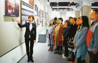 江蘇省淮安市周恩來紀(jì)念館講解員謝美霞為參觀者講述少年周恩來“為中華之崛起而讀書”的故事。新華社記者 朱筱攝