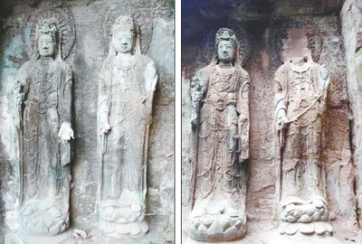 四川省安岳縣木魚山摩崖造像千年佛頭被盜前后。 資料圖片