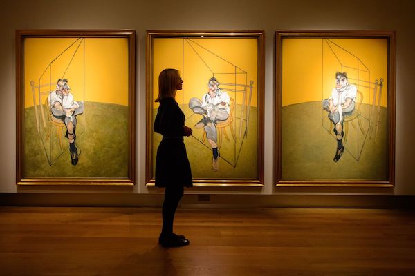 培根在1937年與其他年輕畫(huà)家一起在私人畫(huà)廊托馬斯·阿格紐父子公司(Thomas Agnew & Son’s)展覽,同展者包括英國(guó)著名藝術(shù)家葛瑞漢·蘇哲蘭(Graham Sutherland),后者成為他的友人和導(dǎo)師,也是他將培根介紹給泰特現(xiàn)代藝術(shù)館的館長(zhǎng)約翰·羅森斯坦(John Rothenstei),促成日后使得培根名聲大噪的兩次回顧展。1945年,培根在倫敦的利菲弗畫(huà)廊(Lefevere Gallery)開(kāi)辦個(gè)人展,展出了成名作《三張習(xí)作》。1962年和1985年,培根兩次在泰特美術(shù)館開(kāi)辦了個(gè)人回顧展。培根去世后,他的作品價(jià)格更加飆升。2013年,他的三聯(lián)畫(huà)拍出了1.41億美元的天價(jià),一舉超過(guò)蒙克的《吶喊》,刷新了藝術(shù)品拍賣(mài)的最高紀(jì)錄。
