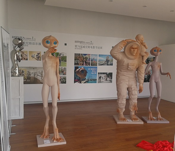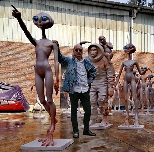 來(lái)自重慶畫院的跨界藝術(shù)家傅榆翔的全球巡回展覽《移民外星人》,是“科學(xué)與人類想象力研究中心”成立之后第一場(chǎng)活動(dòng)。《移民外星人》被譽(yù)為史詩(shī)般宏大而又指向未來(lái)的雕塑裝置作品。該作品采用“超現(xiàn)實(shí)”手法,通過(guò)移民外星人隱喻人類當(dāng)前和未來(lái)的困境和出路:一方面,科技正在帶領(lǐng)人類發(fā)現(xiàn)全新的宇宙;另一方面,人類自身卻異化于以往熟悉的環(huán)境。移民外星不單從社會(huì)人類學(xué)考證人類和歷史,也從未來(lái)學(xué)角度思考當(dāng)下的多元時(shí)代。
