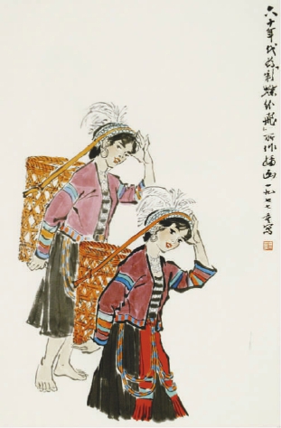 “我從漫畫轉(zhuǎn)到中國畫,夙愿已久,抗日戰(zhàn)爭推動了我,苗族地區(qū)之行是個機會。 ” 20世紀(jì)40年代,葉淺予從漫畫轉(zhuǎn)向中國畫。1942年,葉淺予深入到貴州黔西苗族地區(qū)寫生,開始嘗試用中國畫的筆墨在貴州皮紙上進行創(chuàng)作,畫了第一批苗族人物。這次寫生和嘗試讓葉淺予領(lǐng)略了苗鄉(xiāng)風(fēng)采,但也感覺到漫畫表現(xiàn)手法的局限,“幾次嘗試,逐漸明白漫畫手法已不適用,新的表現(xiàn)方法必須另辟蹊徑,這就是我向中國人物畫傳統(tǒng)畫法追求的開始” ,葉淺予說。