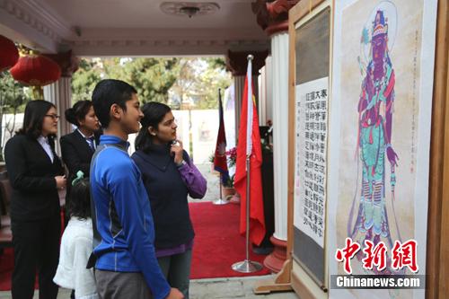 尼中文教協(xié)會(huì)主席哈利仕、尼泊爾中資企業(yè)協(xié)會(huì)會(huì)長(zhǎng)袁志雄等百余名嘉賓觀看了畫展。