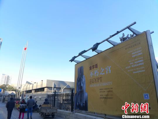 圖為河南省博物院門前陳列的“金字塔·不朽之宮”海報(bào),該展覽將于2017年12月8日至2018年3月22日在河南省博物院展覽。 韓章云 攝