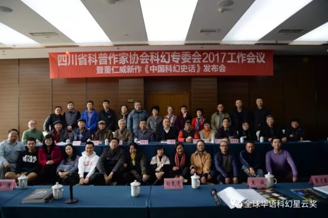 2017年12月9日,四川省科普作家協(xié)會和清華大學(xué)出版社共同在成都大成賓館召開董仁威新作《中國百年科幻史話》發(fā)布會。會議由四川省科協(xié)副主席、四川省科普作家協(xié)會理事長吳顯奎和清華大學(xué)出版社第八事業(yè)部主任張立紅共同主持,四川省科普作家協(xié)會副理事長陳俊明、楊再華、黃寰,秘書長董晶,副秘書長烏珠熱、任路遙,科幻專委會主任姚海軍,副主任楊楓、張春曉,少兒科普報刊專委會主任張衛(wèi)星,辦公室主任李茂榮,理事會秘書鄭潔,四川大學(xué)新聞學(xué)院創(chuàng)始人、老院長、博導(dǎo)邱沛篁教授,四川歷史學(xué)會會長譚繼和教授,《科幻世界》雜志創(chuàng)始人、原社長楊瀟,《科幻世界》雜志創(chuàng)始人之一、原總編輯譚楷,著名漢學(xué)家張昌余教授,著名冰川學(xué)者張文敬研究員,著名出版家、四川教育出版社社長雷華,著名出版家、四川科學(xué)技術(shù)出版社錢丹凝社長,世界華人科普作家協(xié)會秘書長何定鏞、副秘書長李慶雯、方守默、賈英杰,世界華人科幻協(xié)會常務(wù)副秘書長阿賢,四川省氣象局副局長馬力,《科幻世界》雜志社副總編輯拉茲,著名科幻作家及理論研究者劉興詩、王曉達(dá)、謝云寧、彭柳蓉、王林柏、姜永育、何大江、徐渝江、尹代群、黎嬋,火舌文化董事長唐風(fēng)、奇影動漫公司董事長付勝、奇影動漫公司合伙人鐘誠、達(dá)州科普作家協(xié)會秘書長向胤道,四川省科普作家協(xié)會常務(wù)理事王成、李蓉君等四川省科普科幻界人士40余人歡聚一堂,祝賀董仁威《中國百年科幻史話》的出版。