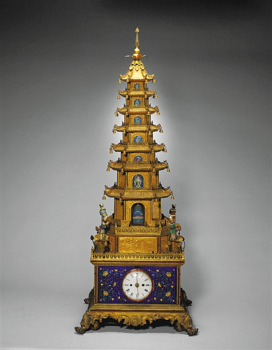 銅鍍金琺瑯升降塔鐘 (故宮博物院藏)