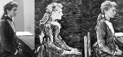 為了保證貼近梵高的客觀視角,多洛塔并不想添加任何非梵高創(chuàng)作的畫,但為了敘述電影故事的完整性,她不得不在繪畫之上添加更多的場景。于是在電影中,彩色的鏡頭是梵高繪畫中的人物和場景,代表著梵高的視野;而類似閃回的黑白鏡頭則不是梵高繪畫中的場景,是創(chuàng)作者為了完善劇情而設(shè)計的場景延伸,基于那個年代的黑白攝影,讓影片展現(xiàn)梵高生活中的一些重要片段。