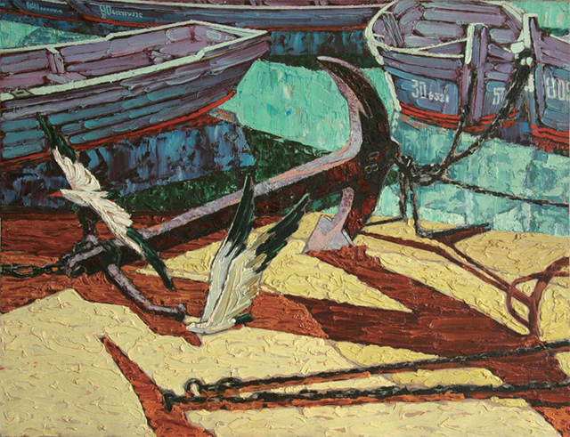 李寶瑞(1937—2016),遼寧省岫巖滿族自治縣人,自幼喜愛繪畫,1965年考入中央工藝美術(shù)學(xué)院,1973年到黑龍江美協(xié)任專職畫家。他的繪畫作品題材多樣,面貌多變,極具藝術(shù)想象力,畫風(fēng)獨特,卓而不群。展覽展出國畫、油畫、書法、水彩、素描、手稿等多種類型作品共60余幅,以及黃永玉、華君武、潘天壽等藝術(shù)家與李寶瑞的信札等,全面展示李寶瑞一生的創(chuàng)作成果和歷程。圖為李寶瑞1976年作品《江沿》。 (欣 聞)