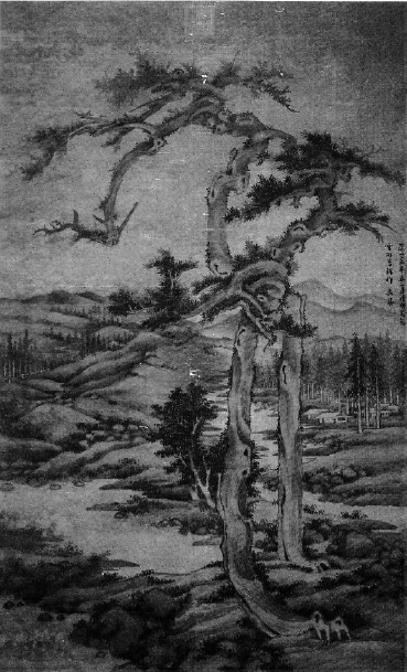 而藏于臺北故宮博物院的《雙松圖》也是代表。此圖在吳鎮(zhèn)作品中署年款最早,題款中有“泰定五年”數(shù)字,則此圖應(yīng)為1328年作品,吳鎮(zhèn)時年49歲。