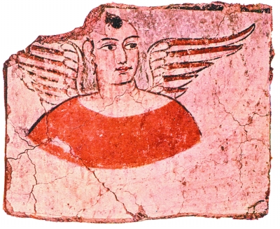 新疆米蘭遺址發(fā)現(xiàn)的古羅馬風格翼人像。