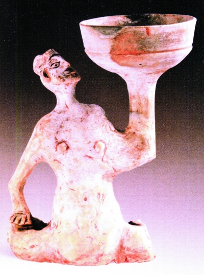 具有白種人外貌特征的陶俑燈(廣州博物館藏)。
