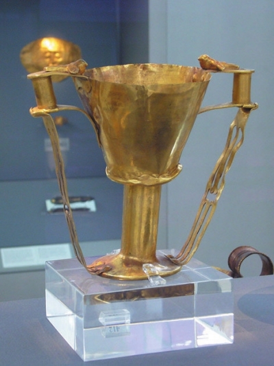 出土于邁錫尼的黃金酒杯,現(xiàn)藏于希臘雅典國家考古博物館
