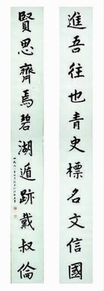1996年,我在北京張中行先生府上聊天。記得當(dāng)時(shí)我拿著一張進(jìn)賢地圖,和張先生講家鄉(xiāng)故事,談到我們進(jìn)賢這一支文氏,元初徙自廬陵 (今江西吉安),與文天祥同宗共祖;也談到唐代詩(shī)人戴叔倫在我家楊坊湖南端隱居等。我請(qǐng)張先生為我撰一聯(lián),要嵌“進(jìn)賢”與文天祥、戴叔倫的姓名、事跡。張先生沉吟醞釀,不出半小時(shí),就按我冒昧之請(qǐng),寫(xiě)出了一副對(duì)聯(lián):“進(jìn)吾往也,青史標(biāo)名文信國(guó);賢思齊焉,碧湖遁跡戴叔倫?!蔽乙?jiàn)之大喜。當(dāng)場(chǎng)領(lǐng)教了張先生的文采后,我不禁想起比張先生小兩歲的中央美院教授、書(shū)畫(huà)家梁樹(shù)年先生在一篇文章中說(shuō)過(guò)的話:“張中行先生的對(duì)聯(lián),無(wú)人可比?!惫幻惶搨靼 ?/p>