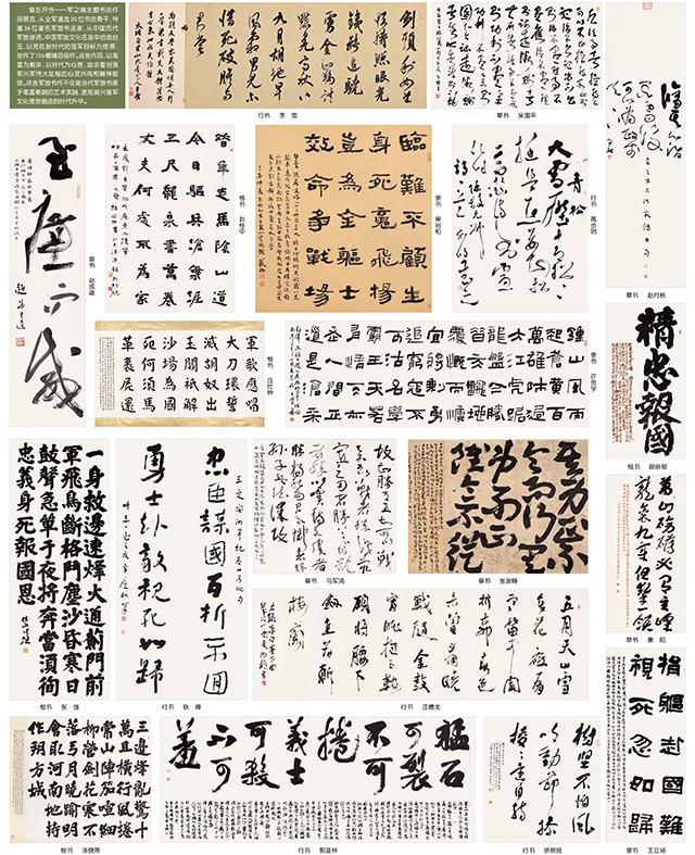 鑒古開今——軍之魂主題書法作品展覽,從全軍遴選20位書法骨干,特邀36位著名軍旅書法家,從中國歷代軍旅詩詞、中國軍旅文化名言中拾金拈玉,以黨在新時代的強(qiáng)軍目標(biāo)為統(tǒng)領(lǐng),創(chuàng)作了136幅精品佳作。這些作品,以筆墨為載體,以時代為心旌,追求著對強(qiáng)軍興軍偉大征程的心靈共鳴和精神皈依。這些軍旅書作不僅是當(dāng)代軍旅書家于筆墨毫端的藝術(shù)實踐,更是振興強(qiáng)軍文化理想信念的時代升華。