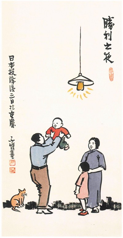 豐子愷的漫畫概括洗練,以仁愛之心描繪童真天趣,充滿生活情趣,如《阿寶兩只腳,凳子四只腳》《瞻瞻底車(二)腳踏車》,也有對民族復(fù)興的歌頌和期望,如《歸來報明主 恢復(fù)舊神州》《勝利之夜》等。豐子愷的漫畫,成為一代代中國人心向美好、熱愛生活的心靈溫泉。