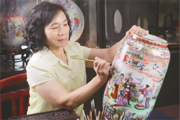 近年來,廣彩變革變新,翟惠玲正是催生當(dāng)代廣彩創(chuàng)作創(chuàng)新發(fā)展的代表人物之一。“廣彩不能只學(xué)基本功,還要善于突破,否則一輩子就只能止步于填色了。 ”翟惠玲說。