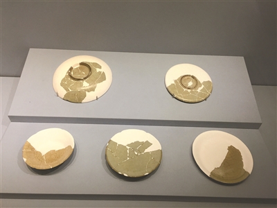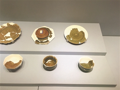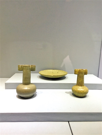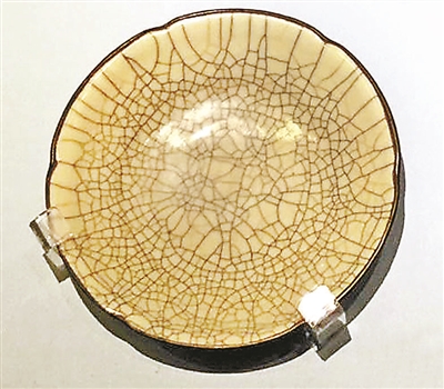 然而若細(xì)觀展覽中故宮博物院所藏哥窯瓷器,或可發(fā)現(xiàn),器物釉色以米黃者居多(圖二),幾乎未見粉青,外觀特征令人生疑。由于文獻(xiàn)中哥窯出自龍泉窯一脈,因此有學(xué)者將龍泉地區(qū)的一種黑胎青瓷視為哥窯瓷器,并對博物館中所藏傳世哥窯瓷器和出土龍泉黑胎青瓷進行了科技分析??萍挤治鼋Y(jié)果顯示,這些傳世哥窯與龍泉黑胎青瓷成分差別較大,似并非真正產(chǎn)自龍泉哥窯的產(chǎn)品,倒更有可能是其他地區(qū)仿哥窯的產(chǎn)品。