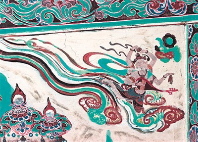 六臂伎樂飛天 盛唐 莫高窟148窟 南壁龕內(nèi)