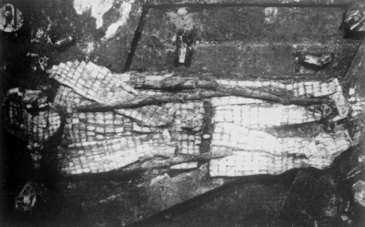 具體的辦法,是用粗鐵絲做一個方形的外框套在玉衣的周圍,再用一根根細(xì)鐵絲縱橫地從玉衣的底下穿過,并把每根細(xì)絲拉直,然后把細(xì)鐵絲的兩端擰結(jié)在外框的粗鐵絲上,再將玉衣平行托起,最后在玉衣上鋪上幾層麻紙,灌注一層厚約兩厘米的石膏,玉衣就原封不動地成為一個整體,被順利運回北京了。