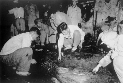 這時,吃完午飯的戰(zhàn)士們陸陸續(xù)續(xù)回來了,曹培成叫李錫明和一名戰(zhàn)士到洞外抬來一根六米長的圓木,正好抵到黑洞的底部。戰(zhàn)士們又找來電線,接上燈泡放入洞內(nèi)。一切就緒后,李錫明、曹培成和3個爆破手一起順著圓木下洞。