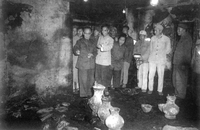 郭沫若參觀1號墓出土的青銅器(左前者為郭沫若)