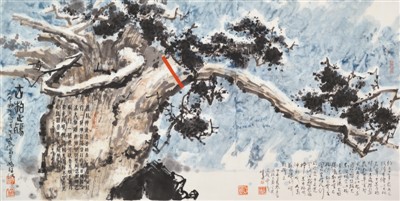 我畫古木,一是喜其造型奇崛,筆墨可蒼拙老辣;二是喜其精神,此正如孔夫子所言:“歲寒,然后知松柏之后凋也?!币蛑耶嬦躁柟虐?,就體會漢武帝所封的大將軍、二將軍古柏造型與人物氣質(zhì)、江山棟梁的關(guān)系;畫泰安普照寺一品大夫松,就將其置風雪之中,取《莊子》“澡雪而精神”之意,名《澡雪圖》,總是希圖寄托些關(guān)乎人文、人格的內(nèi)美。